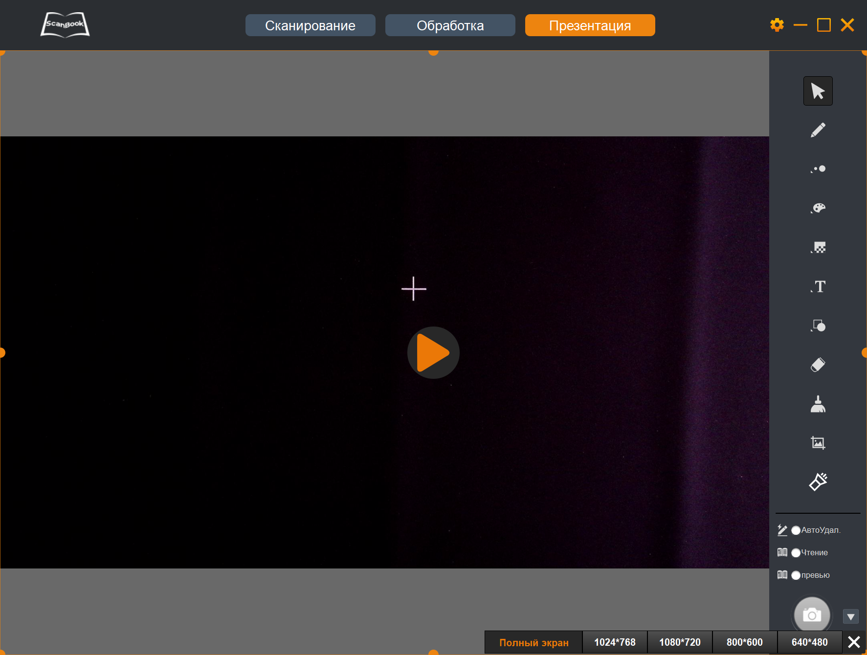 Для сканов-снимков и для видеопрезентаций доступны по четыре формата. Но и тут не без «подводных камней»: по умолчанию для сохранения снимков установлен формат JPEG, мы решили изменить его на TIFF, однако после обработки изображений они упорно сохранялись в JPEG даже после перезапуска программы. Мы всё же добились своего, но в отсутствие справочных материалов можем лишь сделать предположение: изменение формата сохранения работает только для новых снимков, а результаты обработки тех, что уже были сохранены в некоем формате, в нем и будут сохраняться.