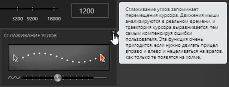 Интересная функция: сглаживание. Чтобы понять ее назначение, в программе имеется подсказка, разъясняющая необходимость такого усовершенствования. Оказывается, программное обеспечение мышки в состоянии компенсировать мелкие рывки и сдергивания, выравнивая траекторию движения. За степень выравнивания отвечает ползунок. Это напоминает настройку сглаживания осей в джойстиках.