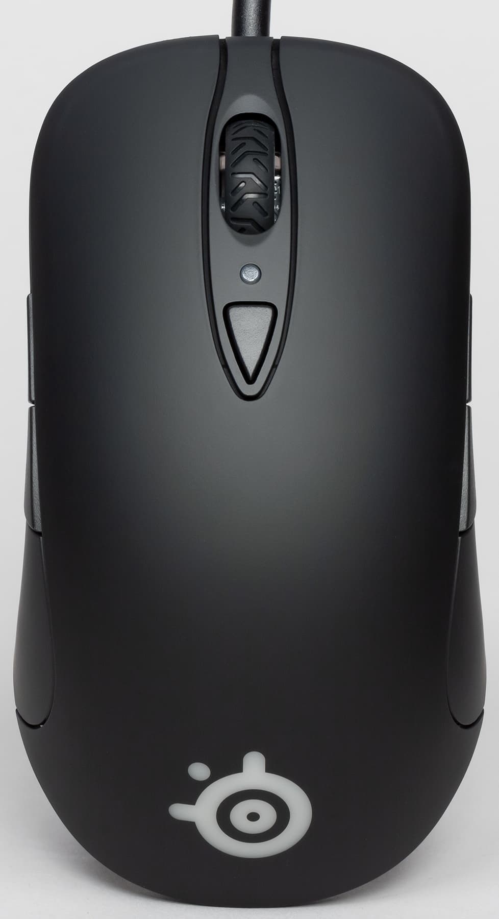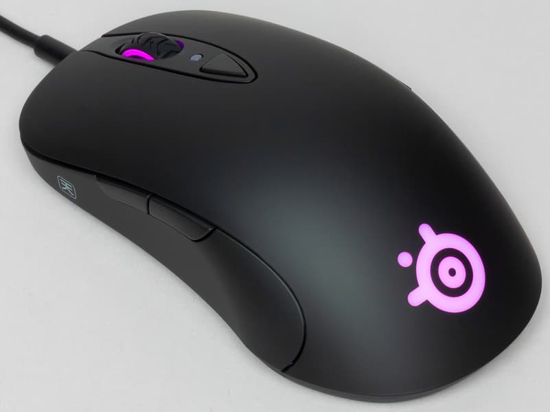 Прозрачный матовый логотип SteelSeries с подсветкой врезан в корпус настолько аккуратно, что кажется, будто он составляет с ним единое целое, без видимых и ощущаемых границ. Высота корпуса составляет 38 мм — наверное, это оптимальный рост для игровых мышек.