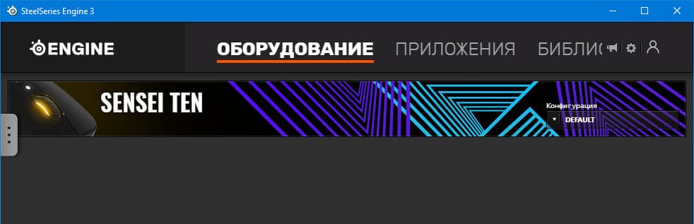 Первое, чем встречает приложение SteelSeries Engine — это, разумеется, список подключенных устройств. В нашем случае этот список довольно жидкий, всего одна позиция. К сожалению.
