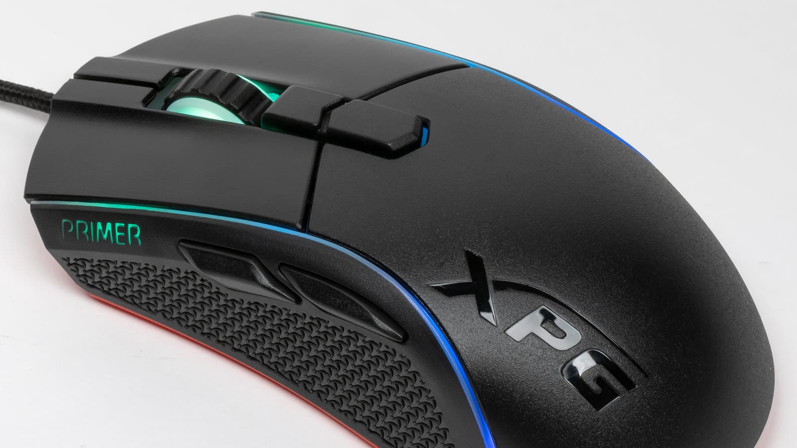 Начнем с мышки. Это XPG Primer, проводная мышь с дизайном для правшей. На это намекают две большие боковые кнопки, расположенные слева. Из-за того, что они сильно выступают из корпуса и вдобавок имеют боковую грань, на них легко нажать и сложно перепутать.