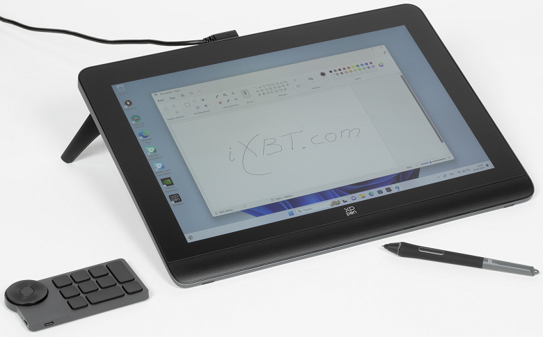 Кроме того, выросла сама по себе ценность дополнительного дисплея. Когда-то целевая аудитория графических планшетов в основном трудилась на стационарных рабочих местах, где поставить большой монитор (а то и несколько) труда не составляло. Сейчас же основным рабочим инструментом у многих является ноутбук — и часто с относительно небольшим экраном в пределах 13 дюймов. Интерактивным дисплеям, конечно, требуется место на столе, это не мобильные устройства, но наш сегодняшний герой, например, может спокойно расположиться поверх клавиатуры ноутбука (доступ к которой при работе с планшетом зачастую не нужен), да и питаться от него же. Если есть немножко места на столе, куда можно поставить небольшой ноутбук, то там же уместится и планшет. А пользователь заодно получит в свое распоряжение дополнительный 16-дюймовый монитор с разрешением WQXGA (2560×1600 при соотношении сторон 16:10), который лучше, чем штатные дисплеи многих ноутбуков. Есть в линейке XPPen и модели с диагональю 22 или 24 дюйма — ноутбуков с такими экранами вообще не бывает.