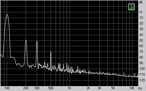 Спектр сигнала, воспроизводимого монитором при подаче частоты 100 Гц