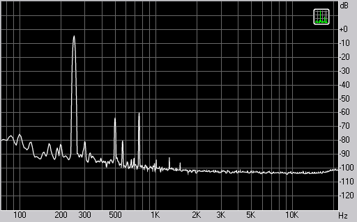 Спектр сигнала, воспроизводимого наушниками при подаче частоты 250 Гц