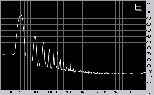 Спектр сигнала, воспроизводимого наушниками при подаче частоты 50 Гц