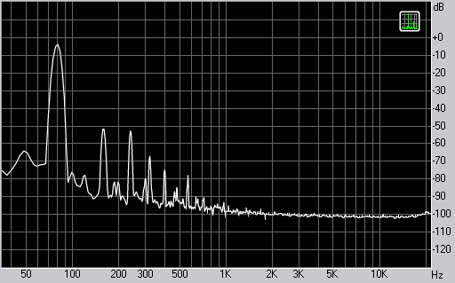Спектр сигнала, воспроизводимого наушниками при подаче частоты 80 Гц