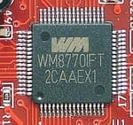 | Преобразователи | ![]() 2/8 I2S-кодек Wolfson WM8770 (ЦАП SNR >106 дБA, АЦП SNR >102 дБА), AC'97-кодек SigmaTel STAC9744 (для аналогового микширования сигналов с внутренних разъёмов карты, 102 дБА в данном режиме) |