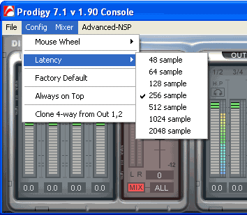 В панели управления картой в опции Config вы можете выставить подходящий размер буфера для оптимизации задержки.
