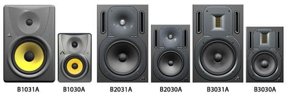 На момент написания обзора линейка студийных мониторов производителя Behringer насчитывает восемь полочных моделей мониторов и один сабвуфер. Между тем, кардинально отличающихся в линейке моделей всего три, но на сайте производителя очень сложно разобраться в целой куче мониторов, похожих друг на друга и с приведенными фотографиями одинаковых размеров. Для более верного представления, о чем идет речь, мы правильно сопоставили габариты имеющихся мониторов.