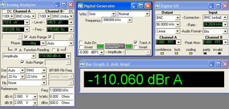 При субъективном тестировании качества звукового тракта использовались студийные мониторы EVENT Studio Precision 6 ($1400/пара), в качестве референсного устройства при сравнении использовалась звуковая карта Lynx Two. E-MU0404 была первых ревизий с AK4395.