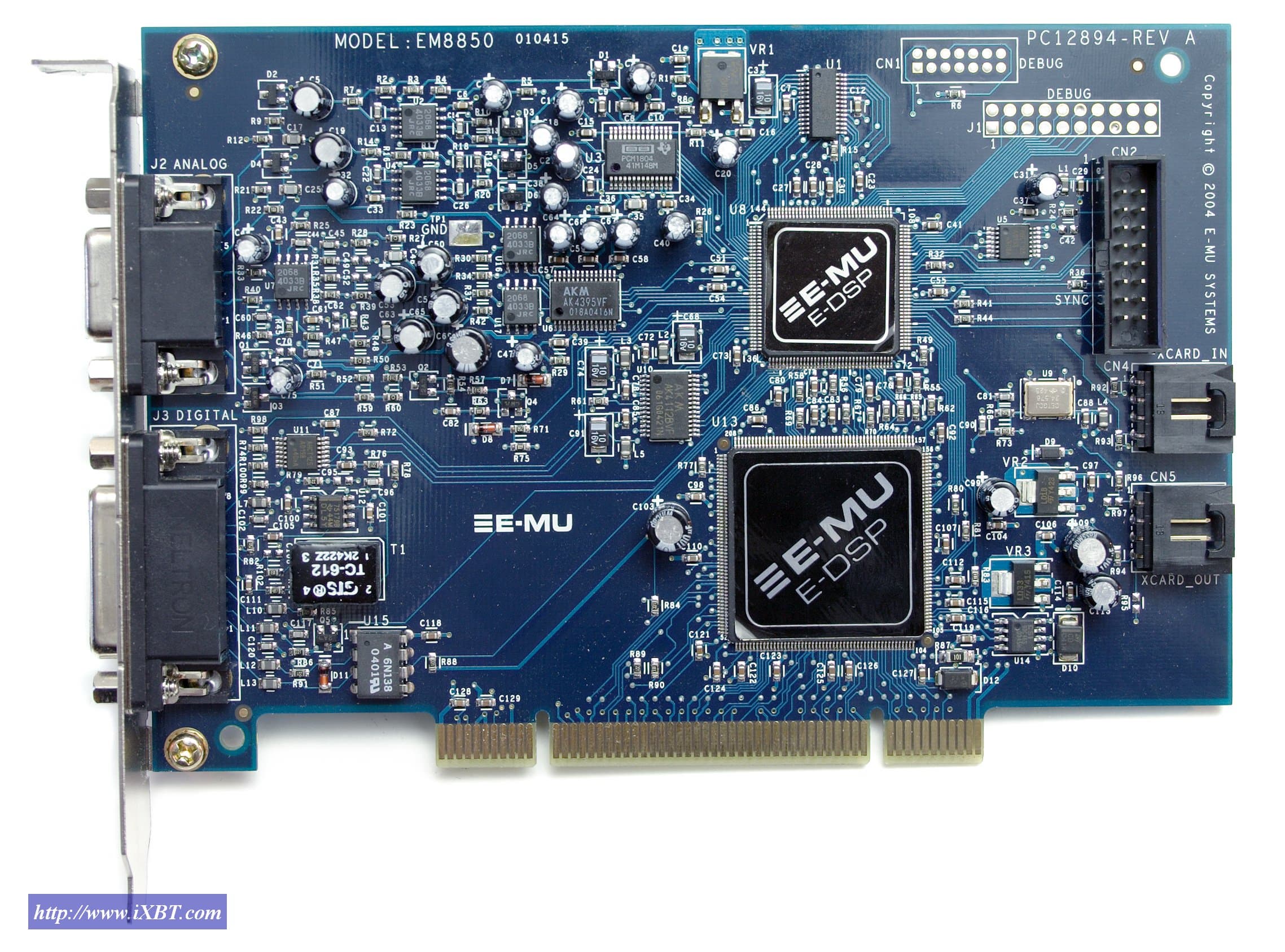 Как видно на фотографии, в отличие от остальных моделей семейства 0404 имеет совсем другой конструктив. Если вы помните, E-MU 1212M, E-MU 1820/1820M базировались на основе цифровой карты E-MU 1010.