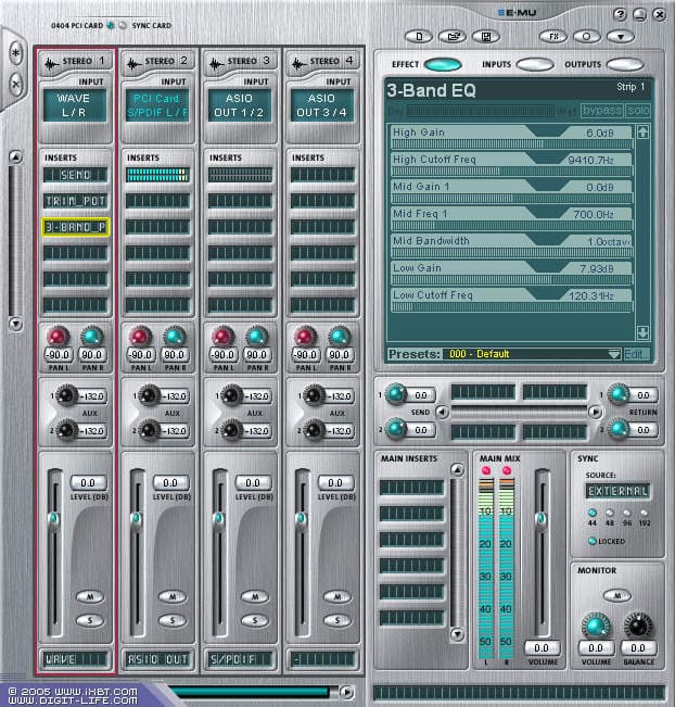 Главная фишка карт E-MU — наличие PatchMix DSP — гибкой и функциональной панели управления. В дополнение к этому, E-MU карты имеют аппаратный процессор разнообразных эффектов.