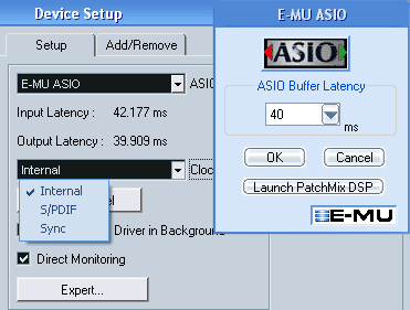 Как и в Juli@/Maxio у E-MU есть возможность перенаправления сигналов из одного интерфейса в другой. У Juli@ за это отвечает фирменная панель DirectWire с виртуальными проводами, а у E-MU команда Send Host ASIO In.