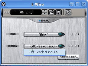 Можно воспользоваться Send Return Physical Output and Input для обработки сигнала внешним DSP по SPDIF (или ADAT для старших карт E-MU). В этом случае сигнал направляется из данной ячейки на SPDIF на внешний DSP и возвращается в эту же ячейку. Испытано при подключении по SPDIF к Prodigy7.1 с обработкой сигнала в Virtual Mixing Console.
