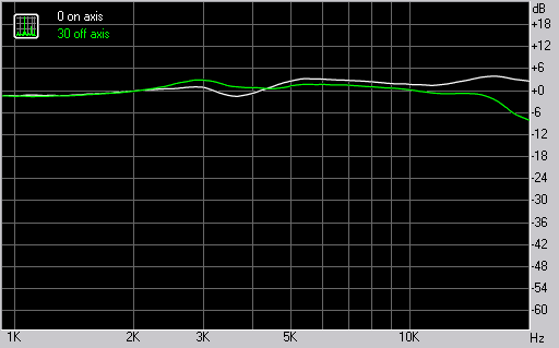 Сравнительная АЧХ на оси твитера и под углом 30 градусов