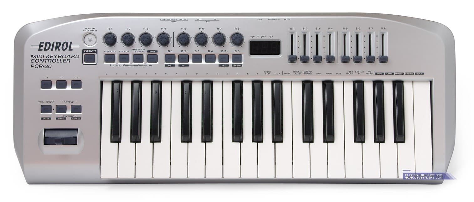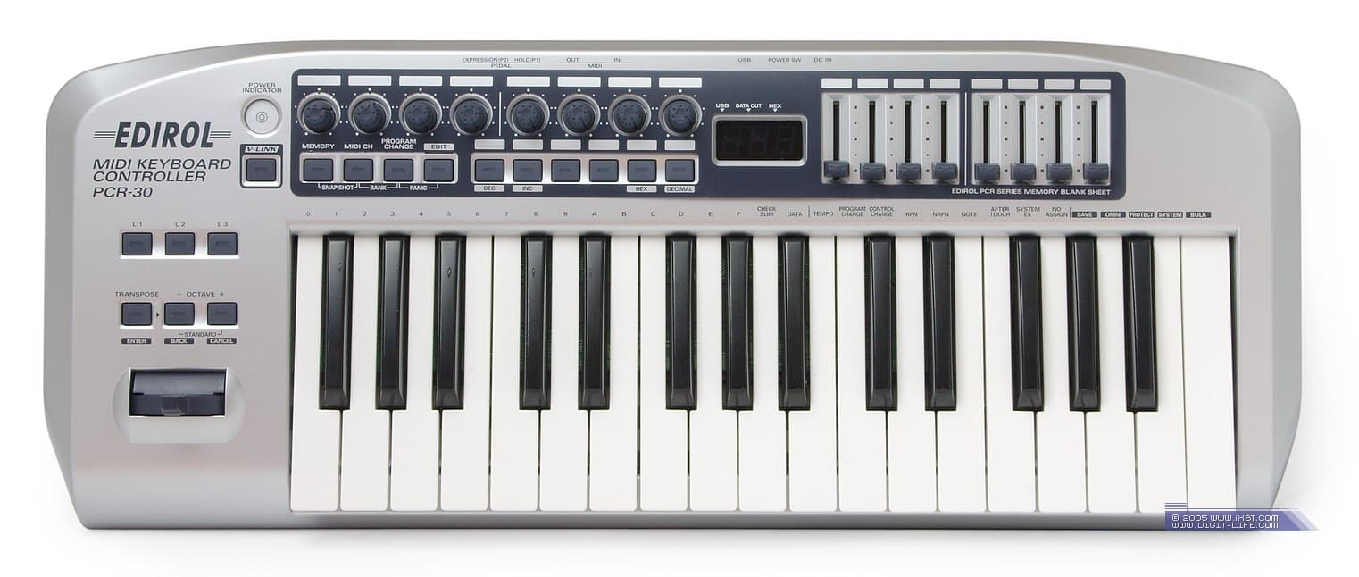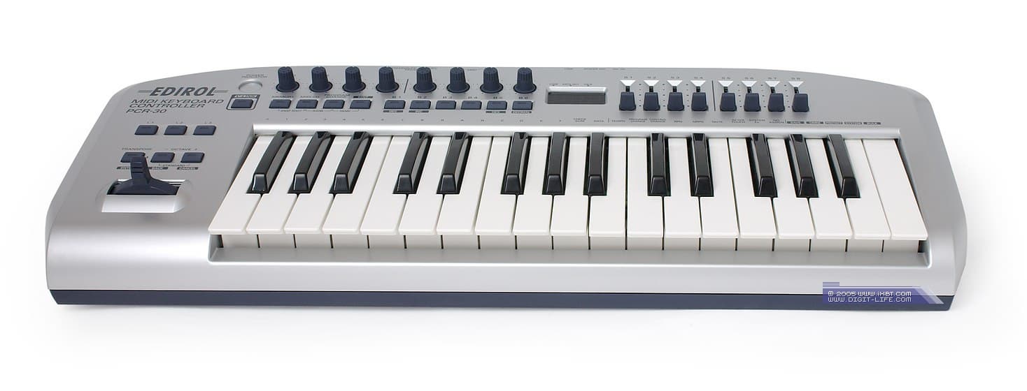 Для нас с вами производитель интересен, в первую очередь, студийными мониторами и различными Audio/MIDI-устройствами. В наши ближайшие планы входит знакомство с некоторыми их них, и начнем мы с MIDI-клавиатуры Edirol PCR-30.