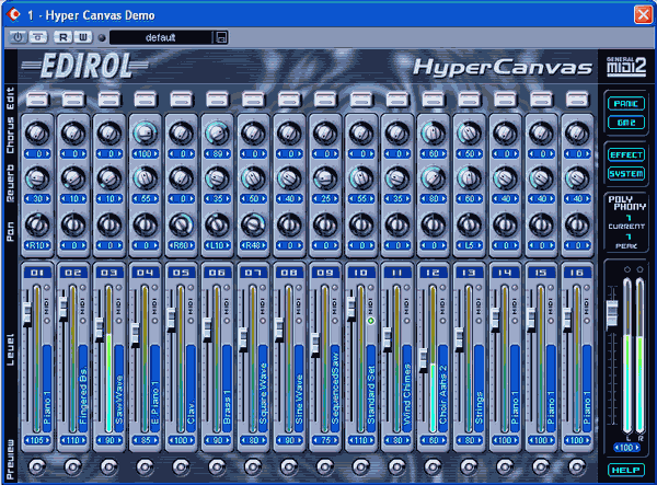 Демонстрационная версии DX/VSTi инструмента «Hyper Canvas» как раз позволила нам проверить работоспособность пресета контроллеров GM2 и почувствовать удобство от использования наклеек.
