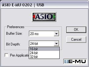 В ASIO Control Panel кроме размера буфера можно уменьшить нагрузку на шину USB посредством выбора битности.