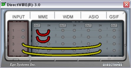 В DirectWIRE 3.0 были добавлены аппаратные входы. Для карты Juli@ виртуальные входы 1 и 2 — это левый и правый аппаратный аналоговый вход, 3 и 4 — левый и правый аппаратный цифровой S/PDIF вход.