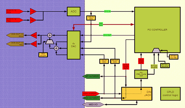 Некоторые комментарии. Хотя ЦАП и АЦП в данной карте одного класса, аналогово-цифровые преобразователи всё же чуть лучше цифро-аналоговых. Вероятно, как и в случае Waveterminal 192X, разработчики полагали, что при прочих равных качество оцифровки (АЦП) более важно в home/project studio, чем незначительное снижение качество мониторинга сигнала. А вот для пользователей hi-end audio PC (RCA-разъёмы — реверанс именно в эту сторону), которые используют свой комп исключительно для высококачественного воспроизведения записей, и которых абсолютно не интересует АЦП, есть повод задуматься — сопоставим ли ЦАП с уровнем остального воспроизводящего звукового тракта? Если остальной тракт много дороже карты (ориентировочно более $600), так что узким местом является, в том числе, качество ЦАП, следует обратить внимание на звуковые карты мастерингового уровня.