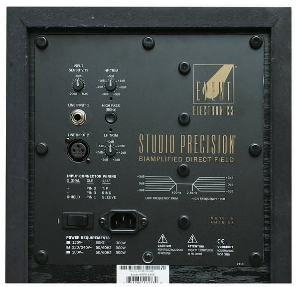 Для работы мониторов со студийными сабвуферами, например, с Event 20/20 250, имеется 80 Гц фильтр ВЧ.