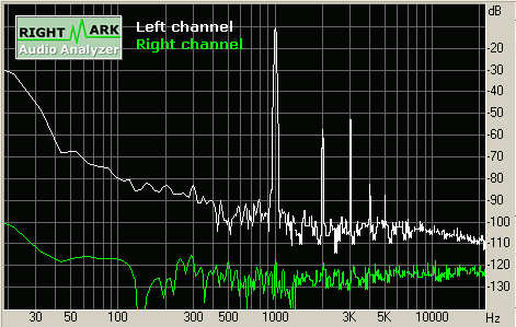 Измерения АЧХ и искажений в тестовом пакете RMAA 5.4 проводились с использованием профессиональной звуковой карты ESI Juli@ (неравномерность АЧХ в loopback в полосе 20 Гц — 20 Гц составляет -0.06, +0.05 дБ) и измерительного микрофона Behringer ECM 8000.