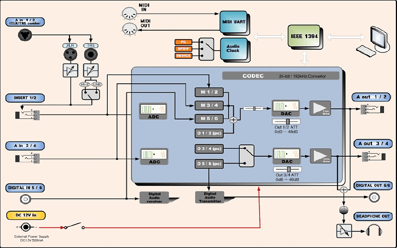 В обзоре Deux мы посетовали, что в комплекте отсутствовал БП. Хотя возможность работы от сети у Deux имеется, рассчет был на питание от шины FireWire. Между тем, большинство покупают внешние интерфейсы для использования с ноутбуками, где либо 4-контактный разъем FireWire, либо слаботочный 6-контактный (менее 0,5 А). По этой причине пользователям необходимо было докупать либо совместимый БП, либо FireWire концентратор с собственным питанием (powered hub).
