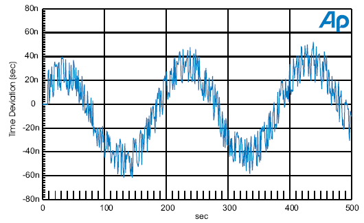 Когда тактовый генератор синхонизирован с внешним источником синхронизации, добавляется джиттер от генератора синхросигнала. Также джиттер может быть добавлен на этапе передачи сигнала синхронизации. К счастью, можно отфильтровать джиттер сигнала синхронизации. Зная характеристики джиттера генератора синхросигнала, можно отфильтровать джиттер на приемной стороне.