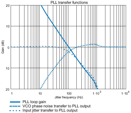 Ниже частоты сопряжения, благодаря ООС, выход ФАПЧ практически повторяет сигнал на входе, при этом фазовый шум ГУН подавляется. С ростом частоты ООС ослабевает, так что джиттер на выходе ФАПЧ будет в большей степени зависеть от собственного фазового шума ГУН и в меньшей от джиттера входного сигнала. Ключевой момент в реализации ФАПЧ приемника или передатчика состоит в компромиссе между собственным джиттером и его подавлением.
