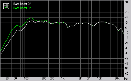 Судя по нашим измерениям, режим Bass Boost осуществляет подъем в области НЧ, достигающий 6 дБ на частоте 60 Гц.