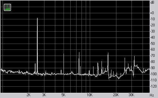 Спектр сигнала, воспроизводимого монитором при подаче частоты 2,5 кГц