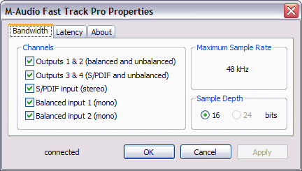 Режим 24 бит 44.1 кГц | M-Audio Fast Track Pro |
