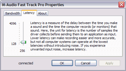 Размер буфера регулируется в пределах 128 — 4096 семплов.