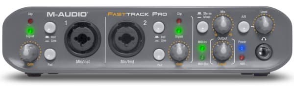 Fast Track Pro — интересный свежий продукт в линейке мобильных интерфейсов M-Audio, представляет собой улучшенную версию интерфейса Fast Track USB. В модели с приставкой PRO появилась поддержка большего количества входов/выходов, профессиональный балансный уровнь сигнала, фантомное питание 48 В для конденсаторных микрофонов, режимы вплоть до 24 бит 96 кГц, улучшены характеристики звукового тракта. Одним словом, продукт значительно переработан для профессионального использования.