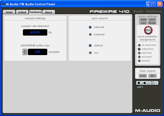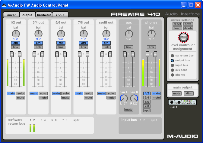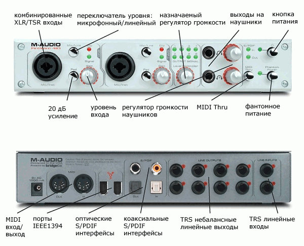 Внешних звуковых интерфейсов с шиной USB у M-Audio в данный момент больше, но многоканальность там отсутствует, либо ограничена по частоте семплирования. В отличие от USB, большая пропускная способность шины IEEE1394 позволяет передавать многоканальный PCM поток в больших разрешениях. Для FireWire 410 это 192 кГц на выход и 96 кГц на вход.