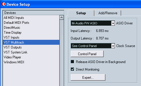 Хоть это и не обязательно для профессиональных устройств, у M-Audio FireWire 410 корректно работает драйвер DirectSound, позволяя использовать устройство, скажем, в WinDVD для прослушивания музыкальных DVD-Video дисков. При этом многоканальность появляется, если выставить многоканальную конфигурацию в стандартных настройках звукового устройства Windows и поставить первичным устройством M-Audio FW Multi.