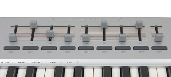Механика клавиатуры Oxygen 61 такая же, как и у модели Keystation 49e. Впечатления от работы только приятные. Несмотря на то, что механика синтезаторная, клавиши достаточно упругие и не болтаются. Ощущения, что они в скором времени могут разболтаться, также не возникает. Кроме этого, в настройках клавиатуры имеется возможность выбора одной из девяти видов кривой velocity, что достаточно редко встречается при синтезаторной механике.