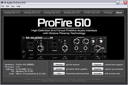 | Тестируемое устройство | M-Audio ProFire 610 |