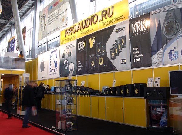 Компания Мультимедиа клуб представила стенд оборудования дистрибуторского центра PROAUDIO.RU. Его можно было узнать по характерному желтому цветовому оформлению и большому баннеру. Среди прочих интересных продуктов на стенде компании были представлены новинки 2005 года от M-Audio, Steinberg, Lynx Studio, MOTU и ADAM.