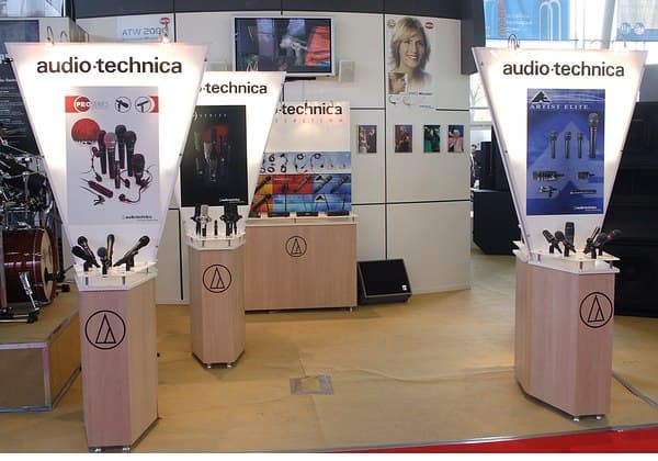 Достаточно оригинально был исполнен стенд с продукцией Audio-Technica.