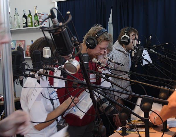 Данный стенд, один из немногих на выставке, предоставлял возможность испытать микрофоны в работе. Работникам стенда было не позавидовать, поскольку желающих попробовать спеть в их микрофоны, было достаточно.