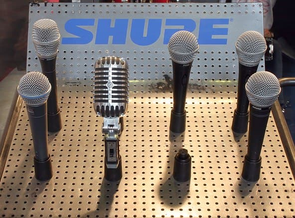 На выставке были представлены различные модели, являющиеся представителями всех линеек микрофонов производителя. Напомним, что микрофоны SHURE разделяются на четыре категории: сценические, студийные, для проведения конференций и для радиовещания.