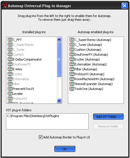 В списке плагинов выбранные VST/VSTi продублируются с пометкой "Automap".