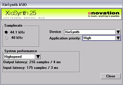 При работе с компьютером необходима установка драйверов. После этого в системе появляется аудиоустройство XioSynth, которое в секвенсоре доступно в качестве ASIO устройства.