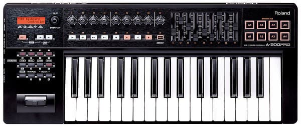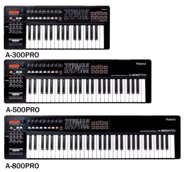 В начале 2010 года компания Roland представила новую линейку MIDI-клавиатур A-series PRO под маркой Cakewalk. Новинки этой серии получили приставку PRO не случайно: все три модели оснащены всеми известными и наиболее часто применяющимися видами контроллеров. Среди контроллеров имеются кнопки транспортной панели, поворотные регуляторы, фейдеры и даже пэды! Похвально, что клавиатуры отличаются друг от друга лишь количеством клавиш. Самая младшая модель A-300PRO имеет 32 клавиши, A-500PRO — 49, а старшая A-800PRO — 61 клавишу. Так как механика у клавиатур идентичная, на примере младшей модели мы можем судить и об остальных новинках.