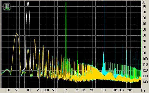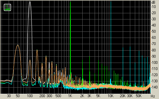 Гармонические искажения с контрольными частотами 100, 1к и 10к Гц
