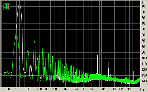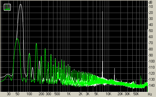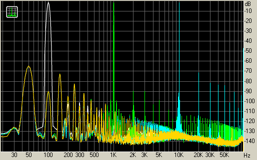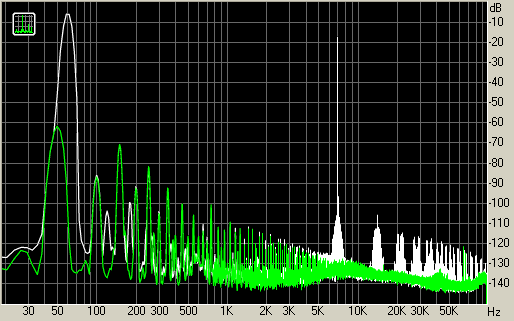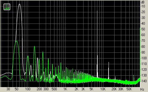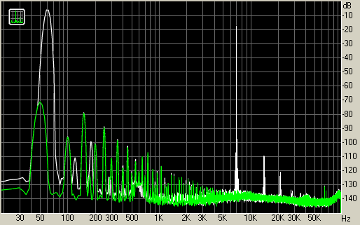 TIMD - Синус 47 Гц + меандр 3 кГц в полосе до 20 кГц и шумовая полка