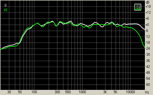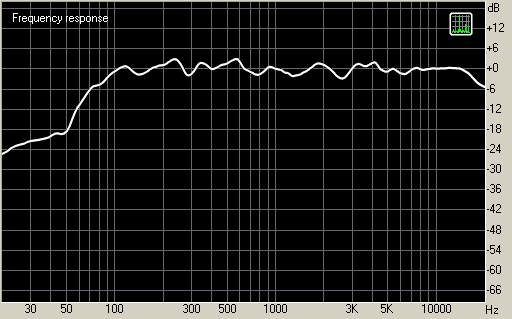 Измерения АЧХ и искажений в тестовом пакете RMAA 5.4 проводились с использованием профессиональной звуковой карты ESI Juli@ (неравномерность АЧХ в loopback в полосе 20 Гц — 20 Гц составляет -0.06, +0.05 дБ) и измерительного микрофона Behringer ECM 8000.
