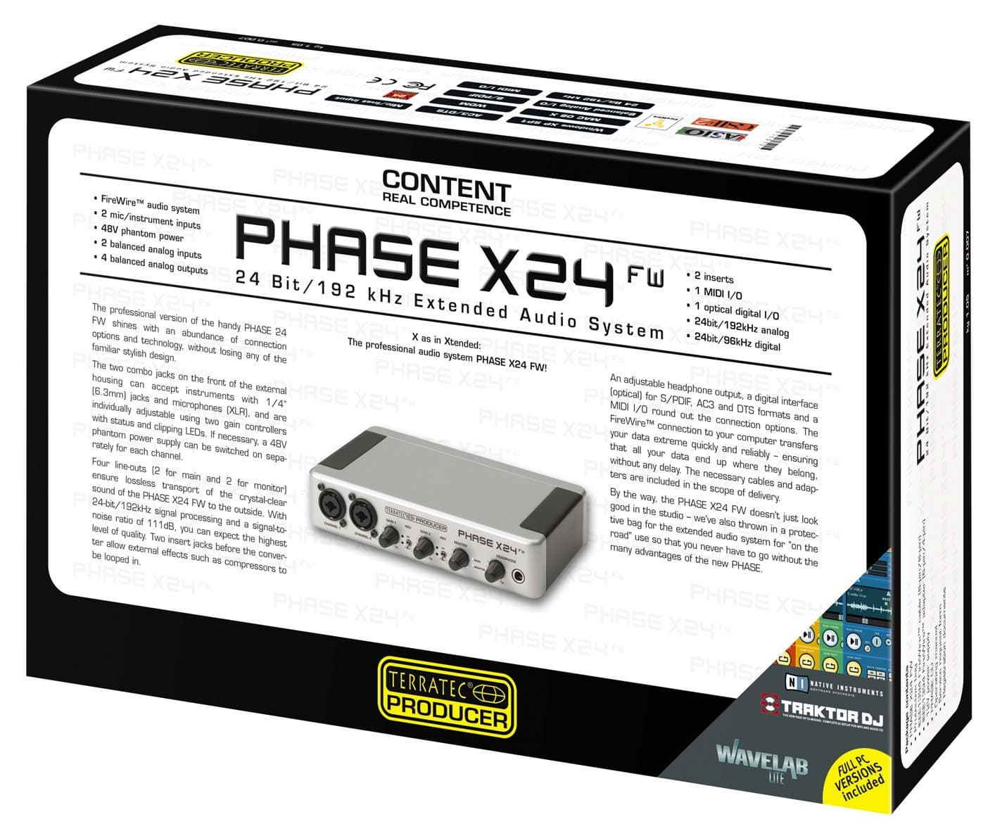 В прошлом году у TerraTec Producer появился PHASE X 24 FW, представляющий собой продвинутую версию похожего по названию продукта PHASE 24 FW. Добавленная буква X означает Xtended, дословно — «расширенный».