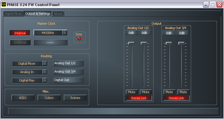 Качество работы линейных выходов, как тест мониторинга, оценивалось в сравнении опять же с ESI Maxio 032 и известной звуковой картой ESI Juli@ — грозный соперник внешних USB/FireWire устройств, никак не желающий дать превзойти себя по качеству. PHASE X24 уступает Juli@ и Maxio 032 в детальности. Однако стоит учесть, что различия между устройствами подобного класса проявятся только при соответствующем остальном оборудовании. Выход на наушники, как обычно, тестировался с применением Sennheiser HD600. Запас по громкости достаточно высокий, искажений и артефактов звучания нет.